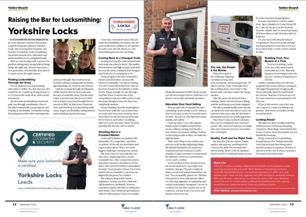 This month was a big milestone for Yorkshire locks. I was published in ‘The Locksmith’ a national magazine for all things locks and security.